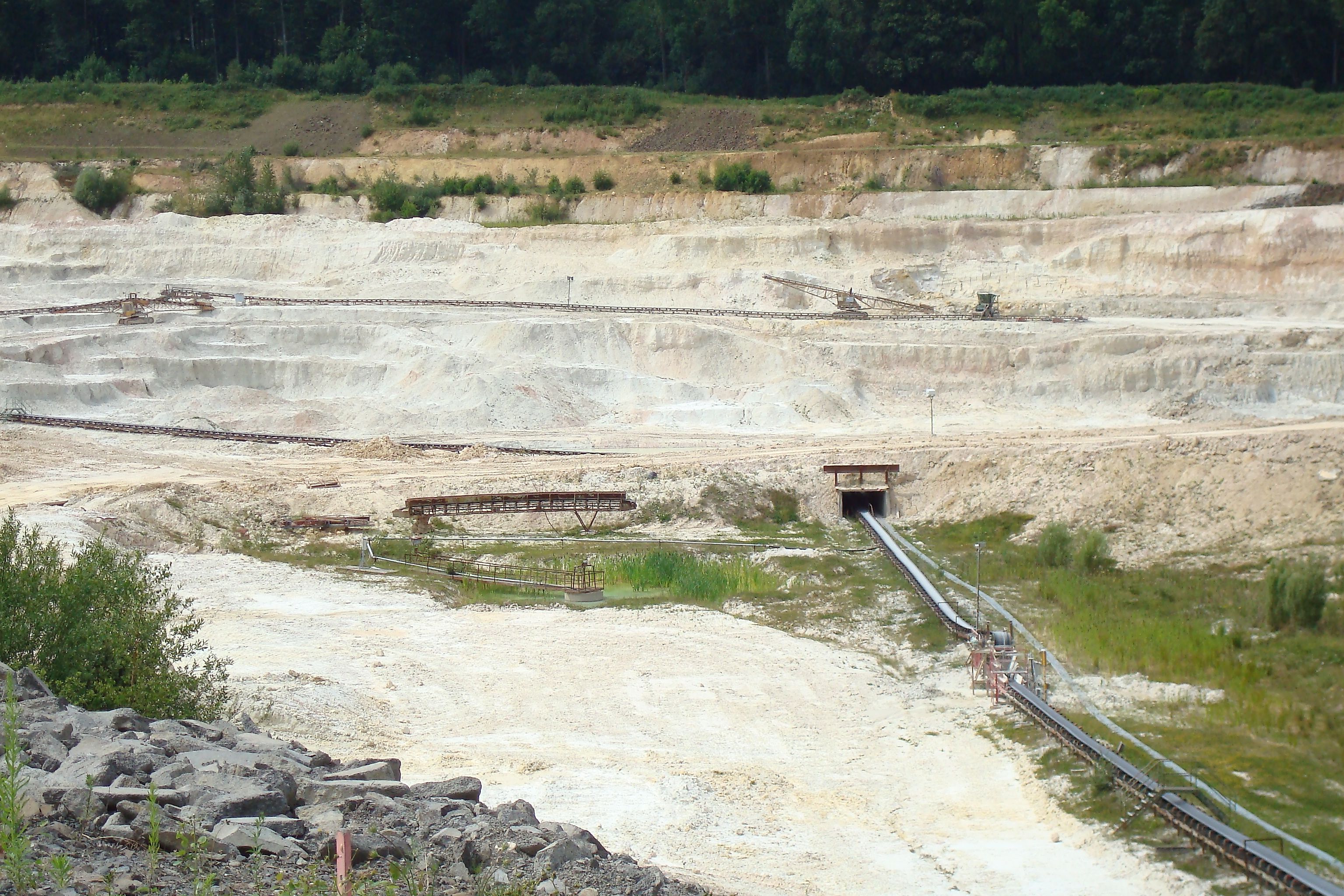 Nach 20 m folgst du dem Pfad zum Ausblickpunkt der Grube „Maria“. Das Foto der Grube auf der kleinen Thementafel von 2019 ist lange überholt – oft verändert sich die Landschaft in und um die Tongruben sehr schnell! Die Tongewinnung ruht zurzeit. Die Grube „Maria“ ist eine der ältesten Tongruben der Region und hat eine Ausbreitung von etwa 45 ha bei einer Tiefe von rund 80 m. Somit stellt sie die tiefste Tongrube des Westerwaldes dar.