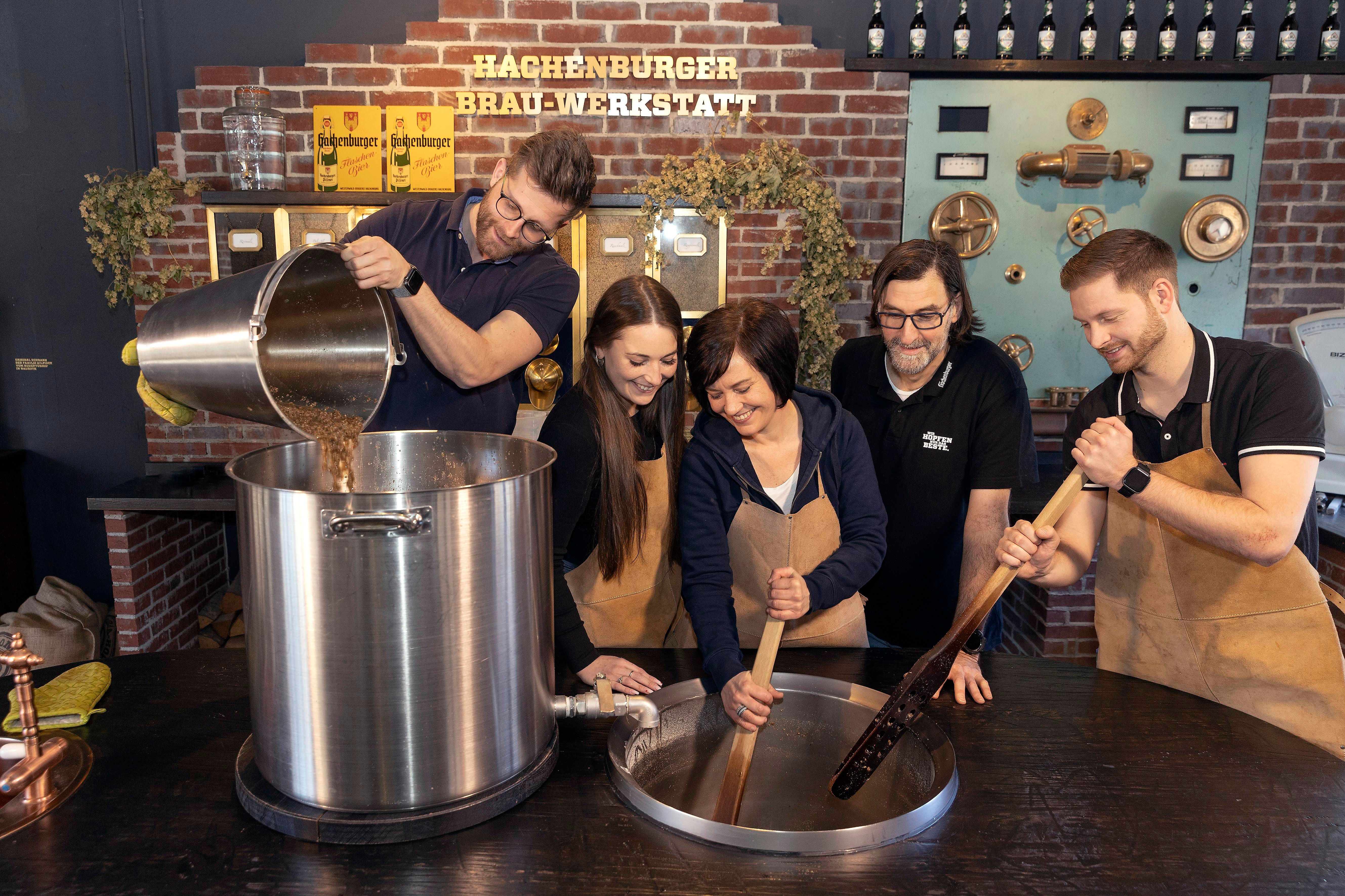 Schaue den Braumeistern über die Schulter und erlebe Hachenburger Braukunst hautnah. Erfahre bei unseren Bier-Erlebnis-Touren durch die Hachenburger Brauerei, wie aus hervorragenden Zutaten und 100 % Aromahopfen national und international prämierte Biere gebraut werden. Ausgebildete Hachenburger Biersommeliers führen die Gäste gekonnt in die Genuss- und Geschmackswelt des besonderen Gerstensaftes ein. An verschiedenen Stationen darf gefühlt, geschnuppert und verkostet werden. Dabei lernst du jede Menge über Wasserqualität, Aromen, Hefearten sowie Gär- und Reifeprozesse und deren Auswirkungen auf die unterschiedlichen Biersorten. Ganz besonders liegt den Hachenburger Brauern am Herzen, dass den Bierliebhabern während der Führung vermittelt wird, welche Genusswelt sich unter dem Produkt "Bier" verbirgt. Denn Bier ist eben nicht gleich Bier, wie der Bierkenner weiß. Bei der neuen Bier-Erlebnis-Tour „Aromahopfen“ erfährst du alles über die Hachenburger Braukunst. Bestaune das neue Hachenburger Sudhaus und erlebe den Weg des Bieres vom malzigen Anfang bis zur Abfüllung in Fass und Flasche. Die „Bier-Expedition“ bietet zusätzlich zur Basis-Tour einen Abstecher in den wunderschönen Hachenburger Bier-Park, unsere Werkstätten und in die Logistik. Im Bier-Park werde dir die Rohstoffe etwas genauer erklärt – denn diese wachsen hier direkt vor Ort. An unterschiedlichen Stationen verkostest du während der Tour insgesamt 6 verschiedene Hachenburger Biere und trainierst mit einem Biersommelier, wie man diese professionell verkostet. Brauer sein für einen Tag! „Nicht nur schauen, sondern selber brauen“ – so lautet das Motto der Hachenburger Brau-Werkstatt. Braue unter Anleitung eines erfahrenen Brauers in unserer modernen „Mikro-Brauerei“ dein eigenes Hachenburger Bier und erlebe eine einmalige Exkursion in die Genuss- und Geschmackswelt „Bier“. Stelle in dem Braukurs selbst ein Spitzenprodukt handwerklicher Braukunst her nach einem Rezept, das du zu Beginn des Braukurses mit deiner Braugruppe selbst aussuchst. Dann wirst du in die Kunst des Brauens eingewiesen – dabei bekommt jeder seine spezielle Aufgabe. Der Brauer zum Beispiel maischt und spindelt, die Qualitätssicherung wacht über die Laborproben und die Logistik hält alle Geräte bereit. Dann wird geschrotet, gerührt, gemaischt und gespindelt, was das Zeug hält – ein Bier-Erlebnis, das du so schnell nicht vergessen werden. Weitere Informationen erhälst du unter www.hachenburger.de. Termine und Buchungen unter: www.hachenburger.de/erlebnis-brauerei/Weitere Fragen? Melde dich gerne! s.schorge@hachenburger.deTel.: 02662 808 88